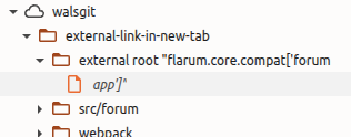 clicking on that app']":1:1 (which is an odd "filename") the console opened it in the source tab which contained only this line module.exports = flarum.core.compat['forum/app']; and looking at the tree on the left, it looked like this :